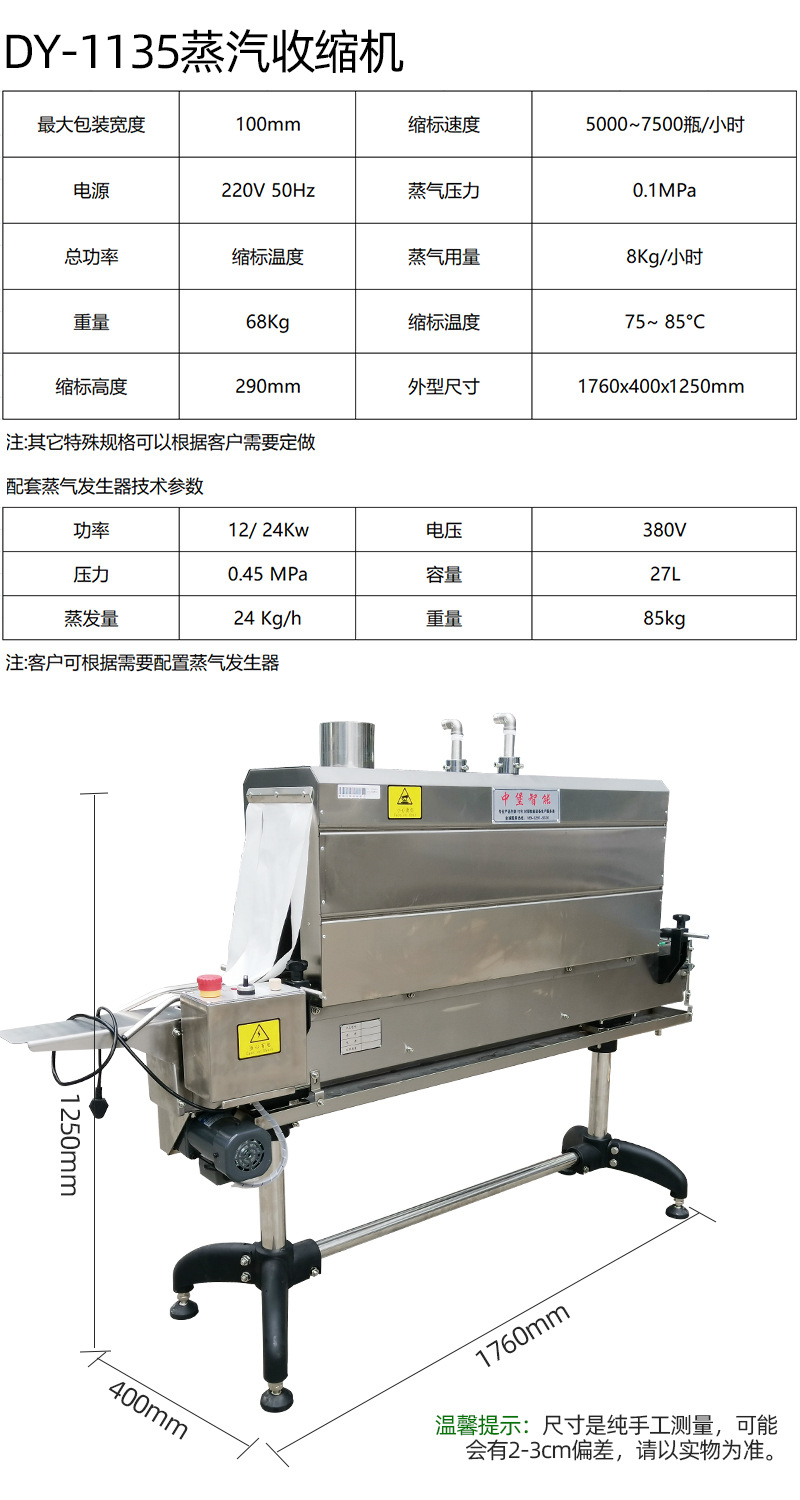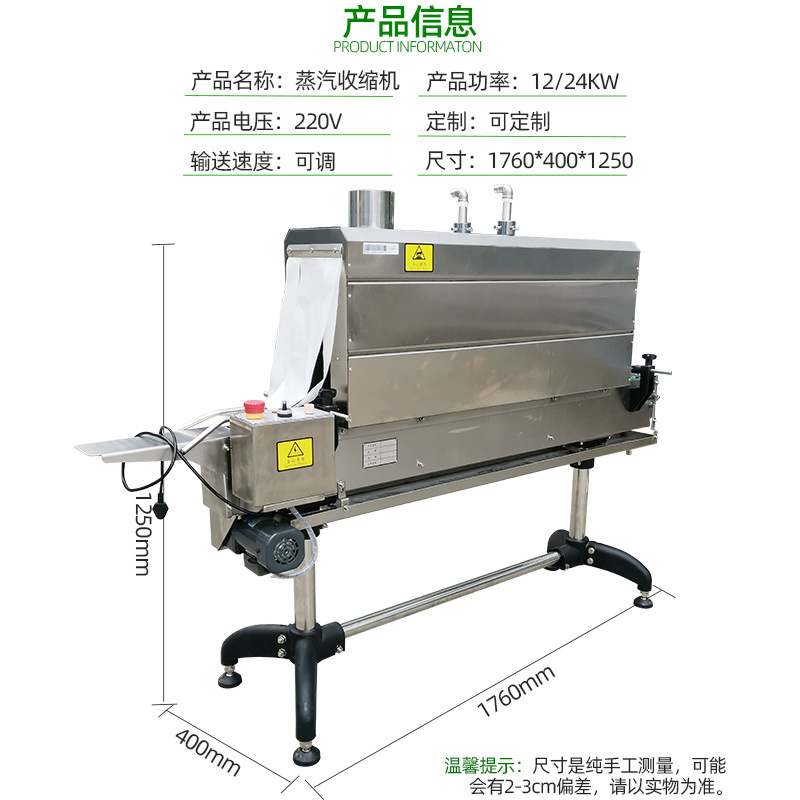 - 環保性能較好:相對于一些使用化學溶劑的包裝方式,蒸汽收縮機主要利用蒸汽作為熱源,減少了對環境有害的化學物質的使用。