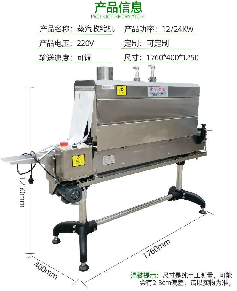 • 不同材質(zhì)的收縮膜對蒸汽的溫度和時(shí)間要求不同,應(yīng)根據(jù)實(shí)際情況進(jìn)行調(diào)整。