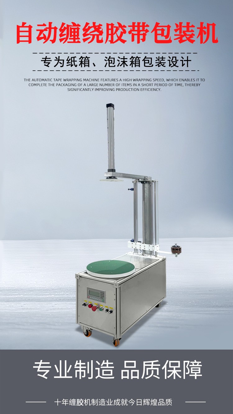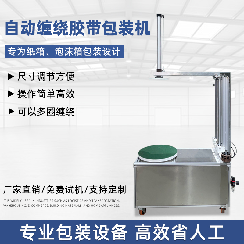 • 貨物纏繞機:主要用于托盤貨物、大型設備等的包裝,通過旋轉工作臺帶動貨物旋轉,同時膠帶從上方或側面進行纏繞,如常見的物流倉儲用膠帶纏繞機。