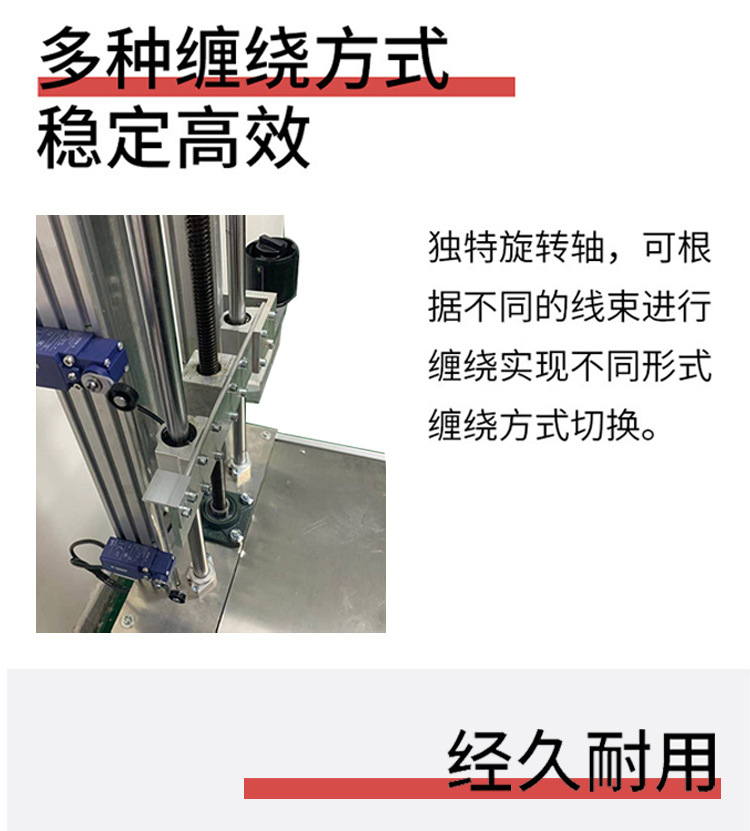 • 纏繞精度高:一些線束纏繞機的纏繞緊密度誤差可控制在 ±2mm 以內,能精準完成各種規格物品的膠帶纏繞工作。