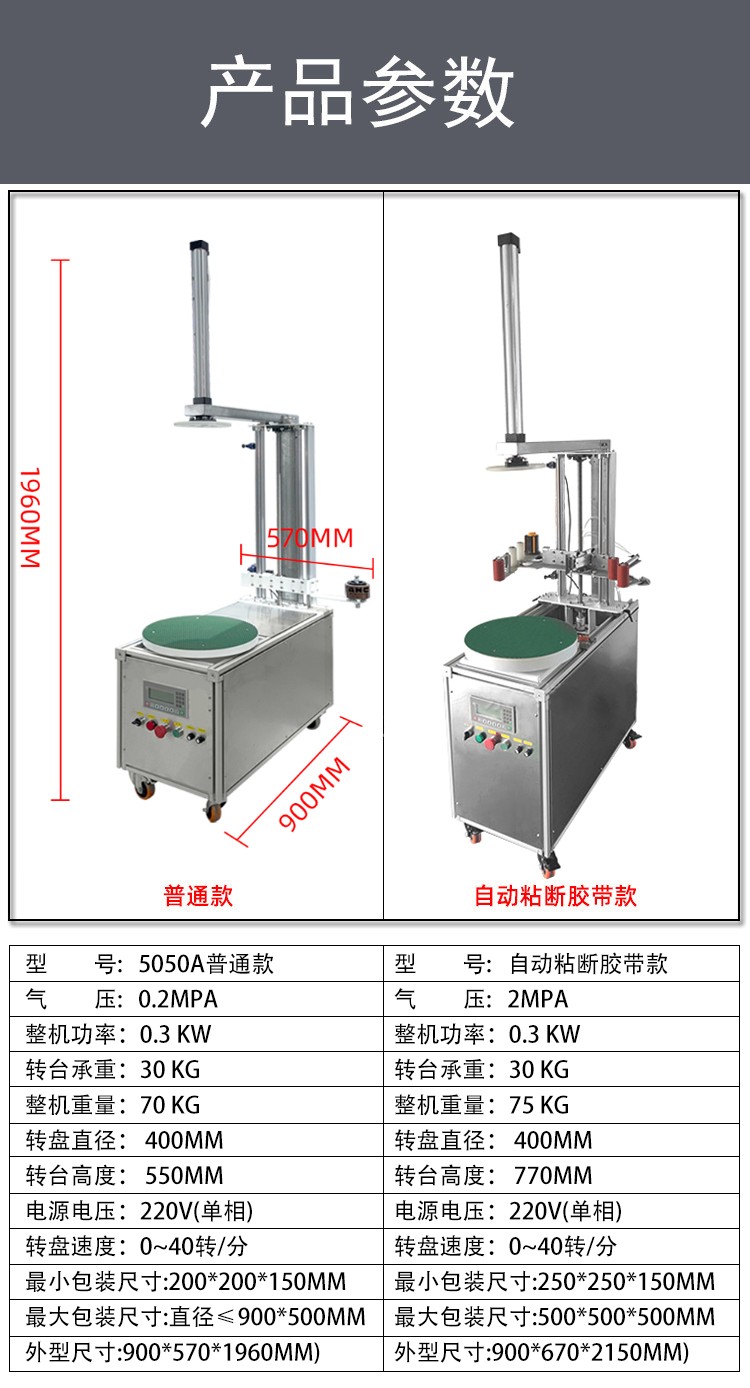 • 重型 / 大型貨物:替代人工難以完成的高強度纏繞作業,既保證包裝牢固度,又避免人工操作的安全風險,提升重型貨物包裝效率。