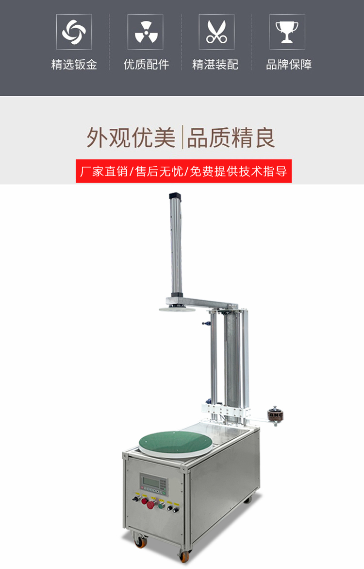 3. 多功能兼顧:纏繞過程中薄膜拉伸率可控(通常 10%-30%),既保證包裝緊密不松動,又避免薄膜浪費;部分機型支持頂部 / 底部加強纏繞、預拉伸功能,進一步提升包裝穩定性,同時降低耗材成本。