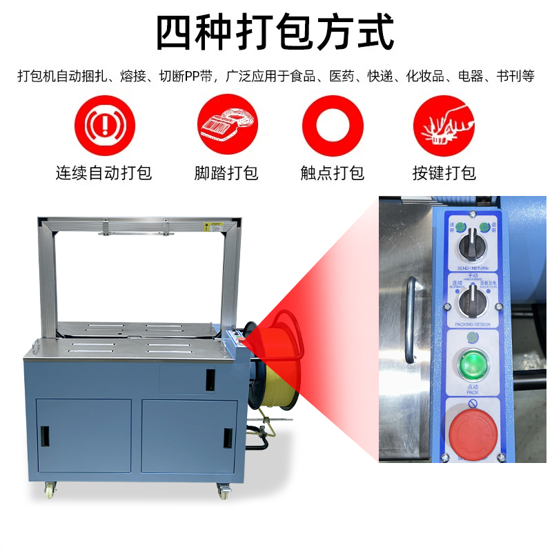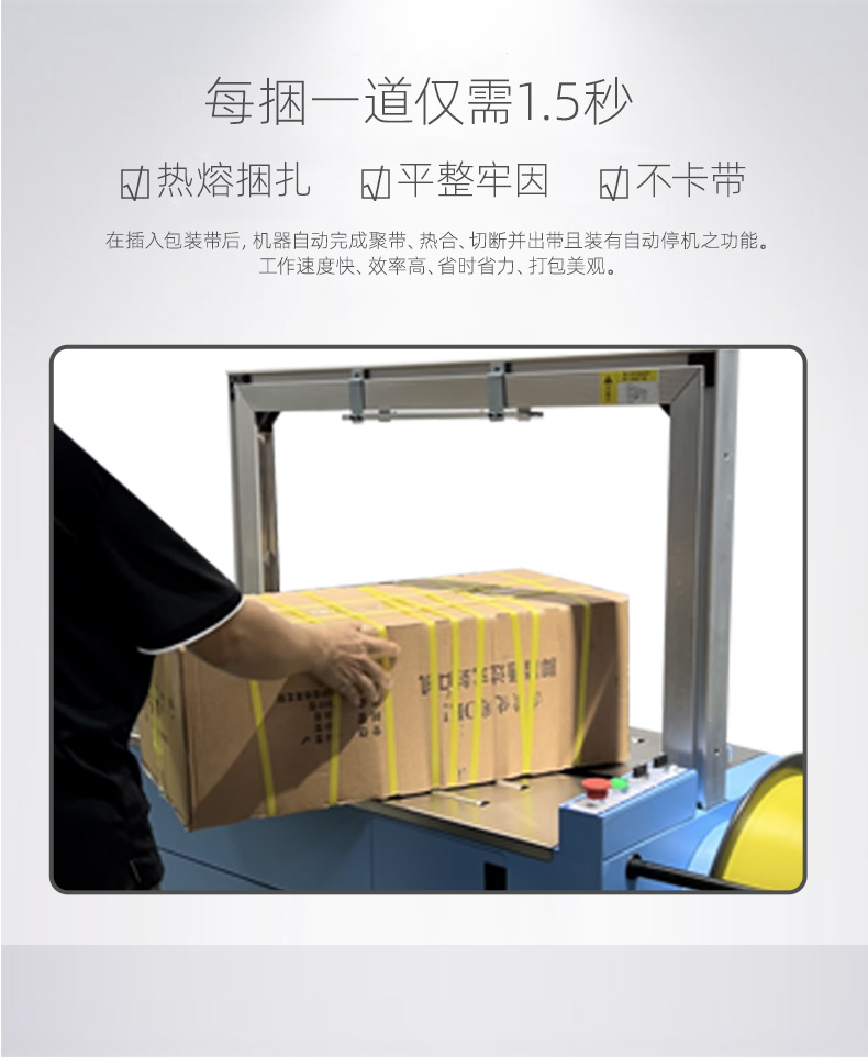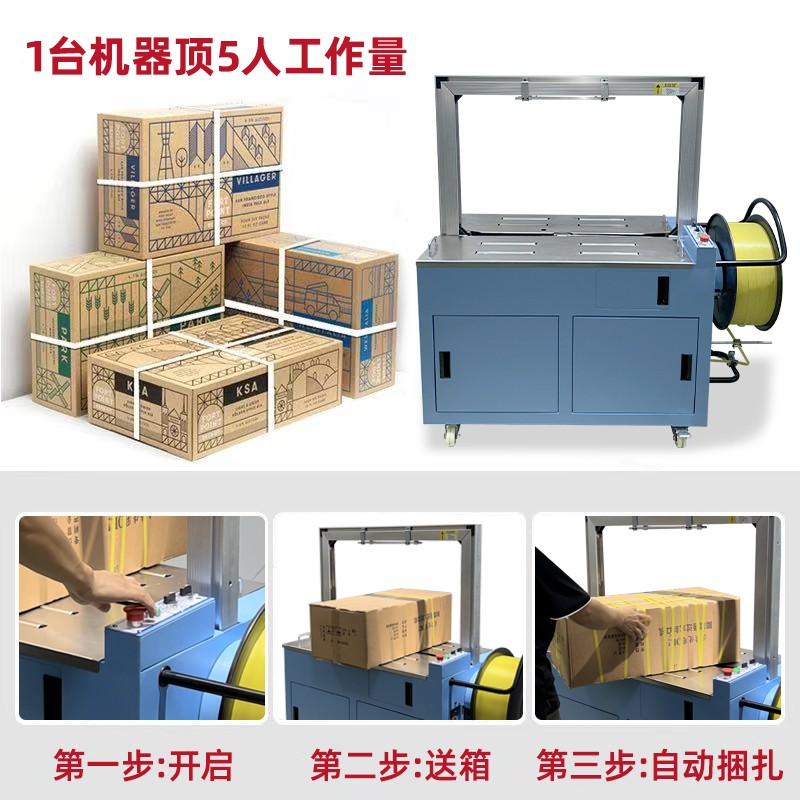 - 自動上帶:機(jī)器啟動后,會自動從打包帶卷中抽出打包帶,并將其傳送到預(yù)定的位置,準(zhǔn)備進(jìn)行打包。這個過程無需人工干預(yù),大大提高了工作效率。
