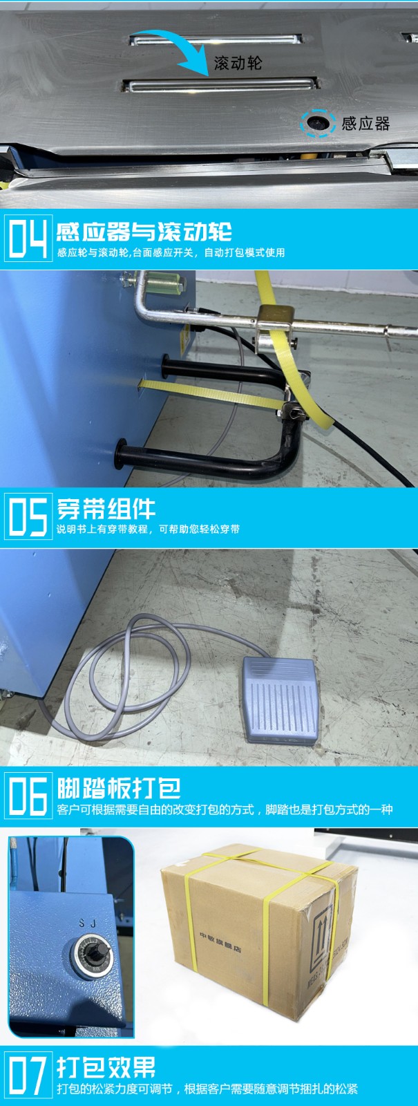 - 成品輸出:打包完成后,輸送帶會將打包好的物品送出打包區(qū)域,進(jìn)入下一道工序或直接進(jìn)行存儲、運(yùn)輸。