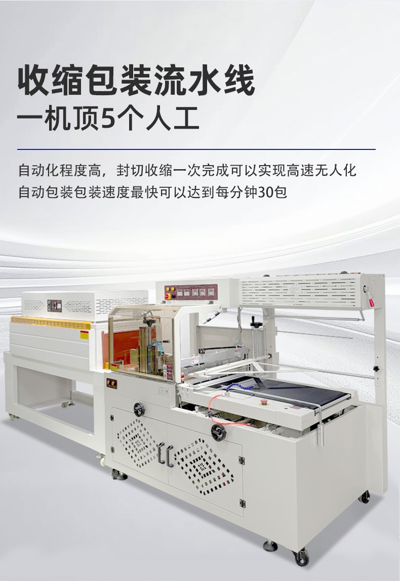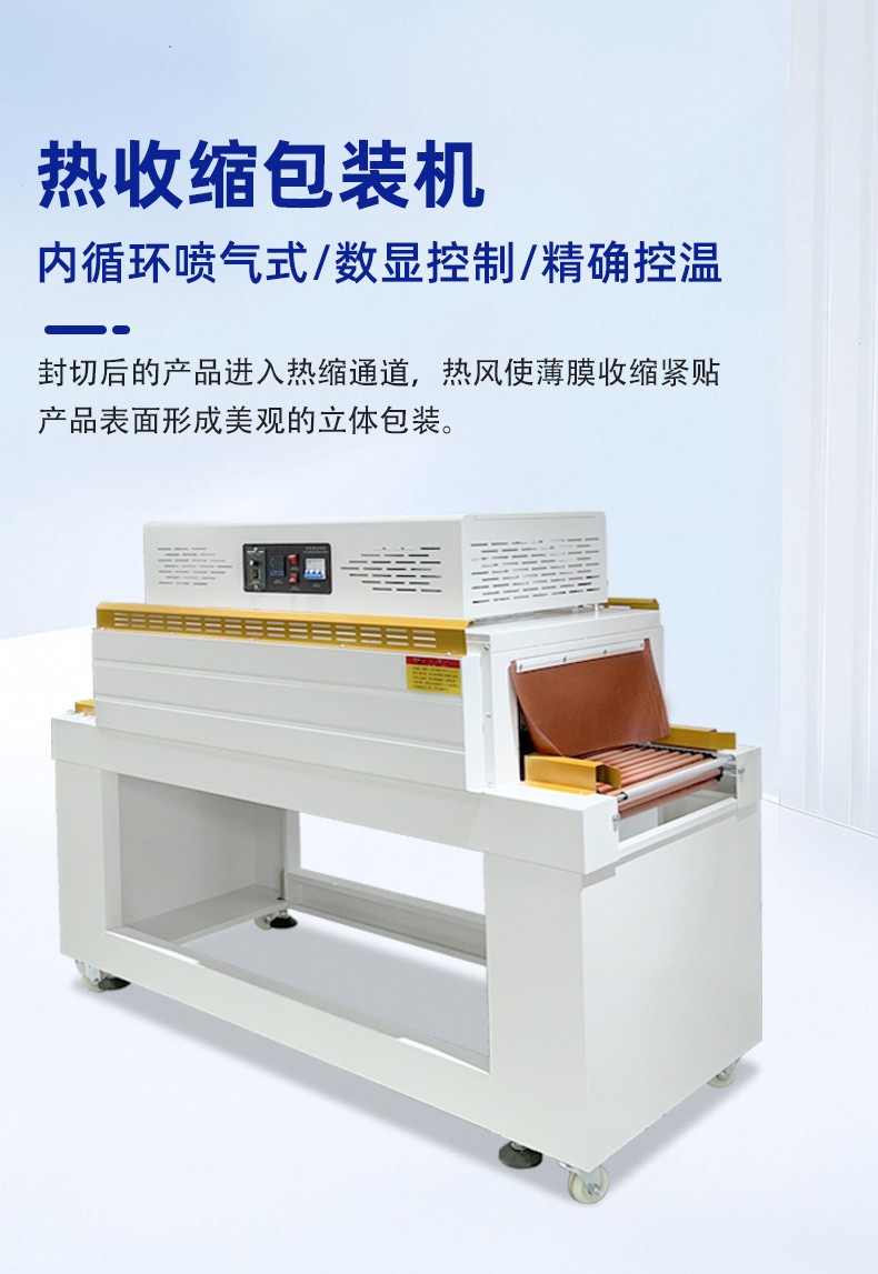 - 工作原理6:通常基于恒溫加熱技術(shù),先將收縮膜加熱至所需溫度,然后對(duì)已包裹產(chǎn)品的收縮膜進(jìn)行熱封切操作,再將完成封切的產(chǎn)品送入收縮爐內(nèi)加熱,使收縮膜收縮并緊密貼合產(chǎn)品,最后經(jīng)冷卻得到平整美觀的包裝效果。