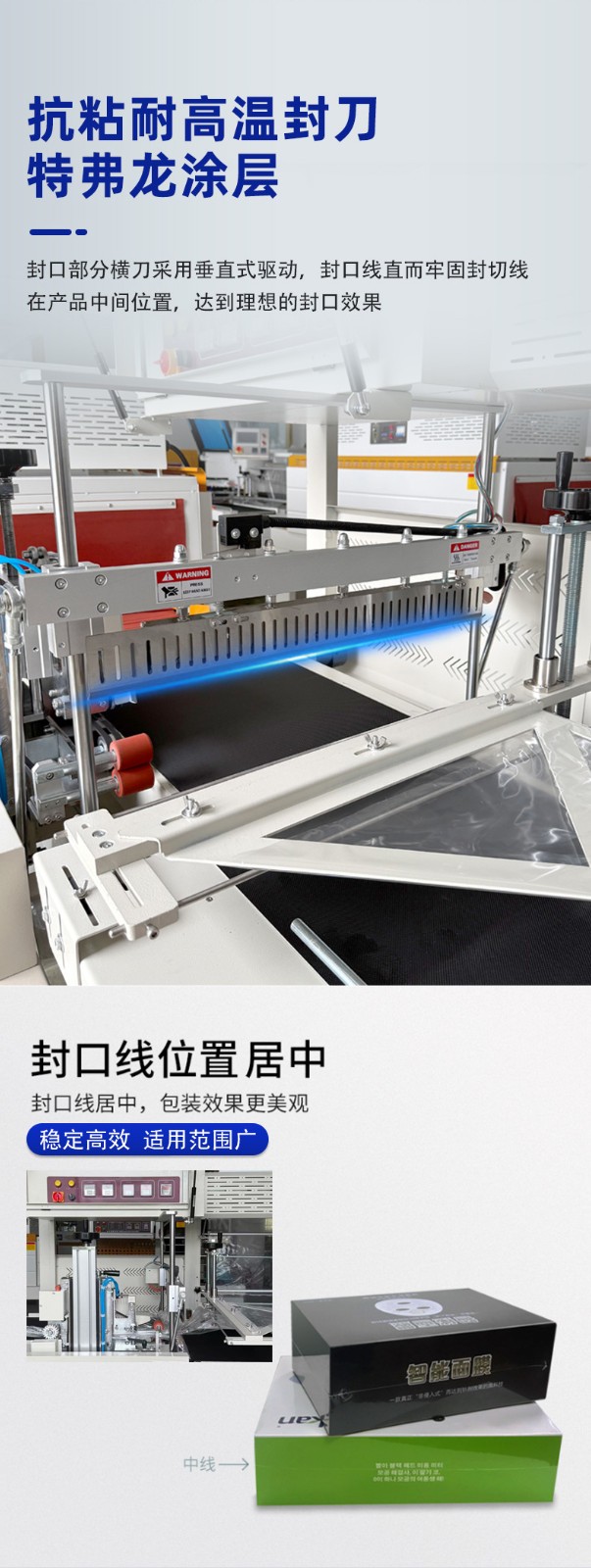 - 封切效果好5:封切刀通常采用杜邦特弗龍涂層抗粘耐高溫鋁合金刀,封口牢固,不會(huì)開裂、焦化,且封口線直而美觀。部分設(shè)備還具備封切刀保護(hù)裝置,可防止誤切包裝物。