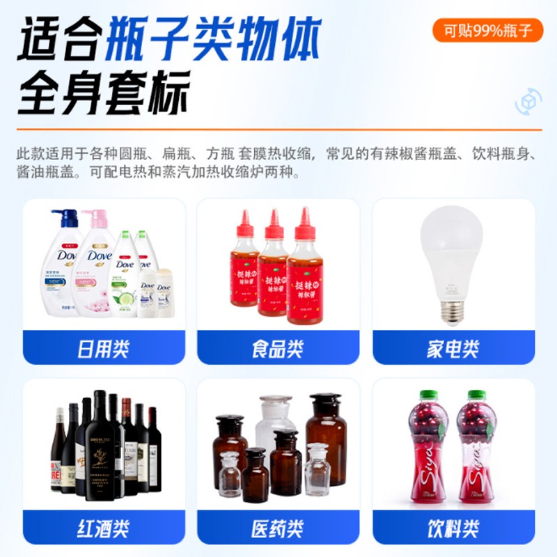 - 應(yīng)用場景:適配圓形瓶、方形瓶、橢圓形瓶等不同形狀容器,尤其解決異形瓶因輸送時 “偏移、旋轉(zhuǎn)” 導(dǎo)致的套標(biāo)歪斜問題。