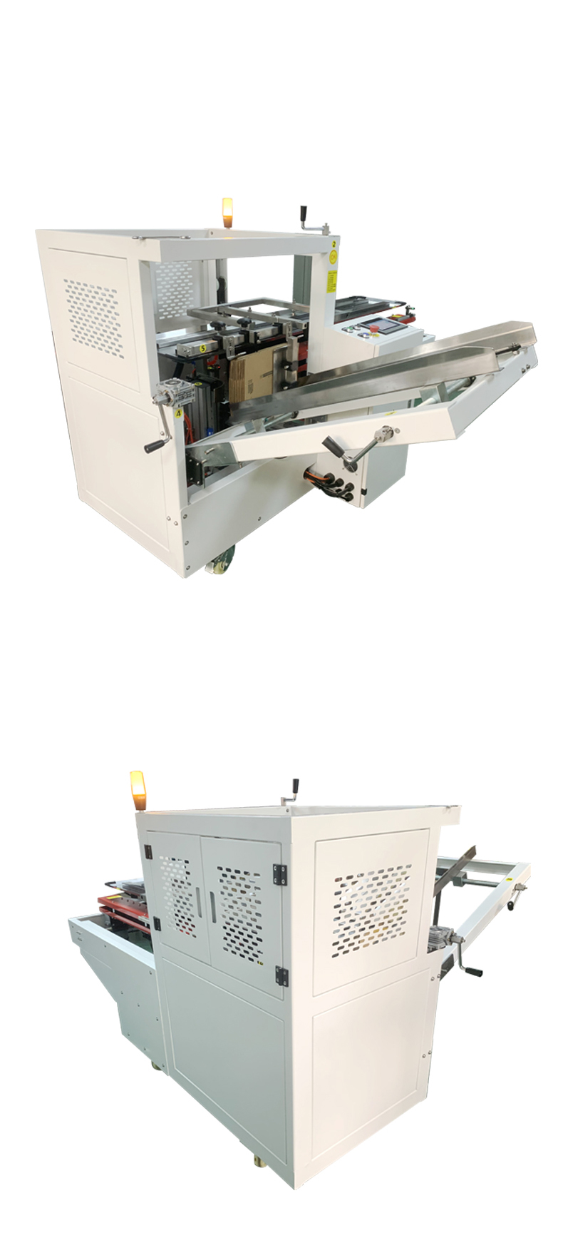 - 輔助折疊裝置(如果有):這些裝置可以是一些帶有滾輪的導軌或可旋轉的折頁板。當紙箱經過這些裝置時,滾輪或折頁板會與紙箱的折痕接觸,通過滾動或旋轉的動作幫助折痕更好地折疊,提高開箱的效率和質量。