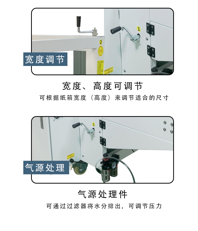 - 熱熔膠封底方式:對于采用熱熔膠封底的機器,會有熱熔膠槍。熱熔膠在膠槍中被加熱熔化后,通過膠槍的噴嘴均勻地涂抹在紙箱底部的折頁上。當折頁被折疊起來時,熱熔膠在冷卻過程中會將折頁牢固地粘合在一起。熱熔膠的用量和溫度可以根據紙箱的材質和尺寸進行調節,以保證封底的質量。